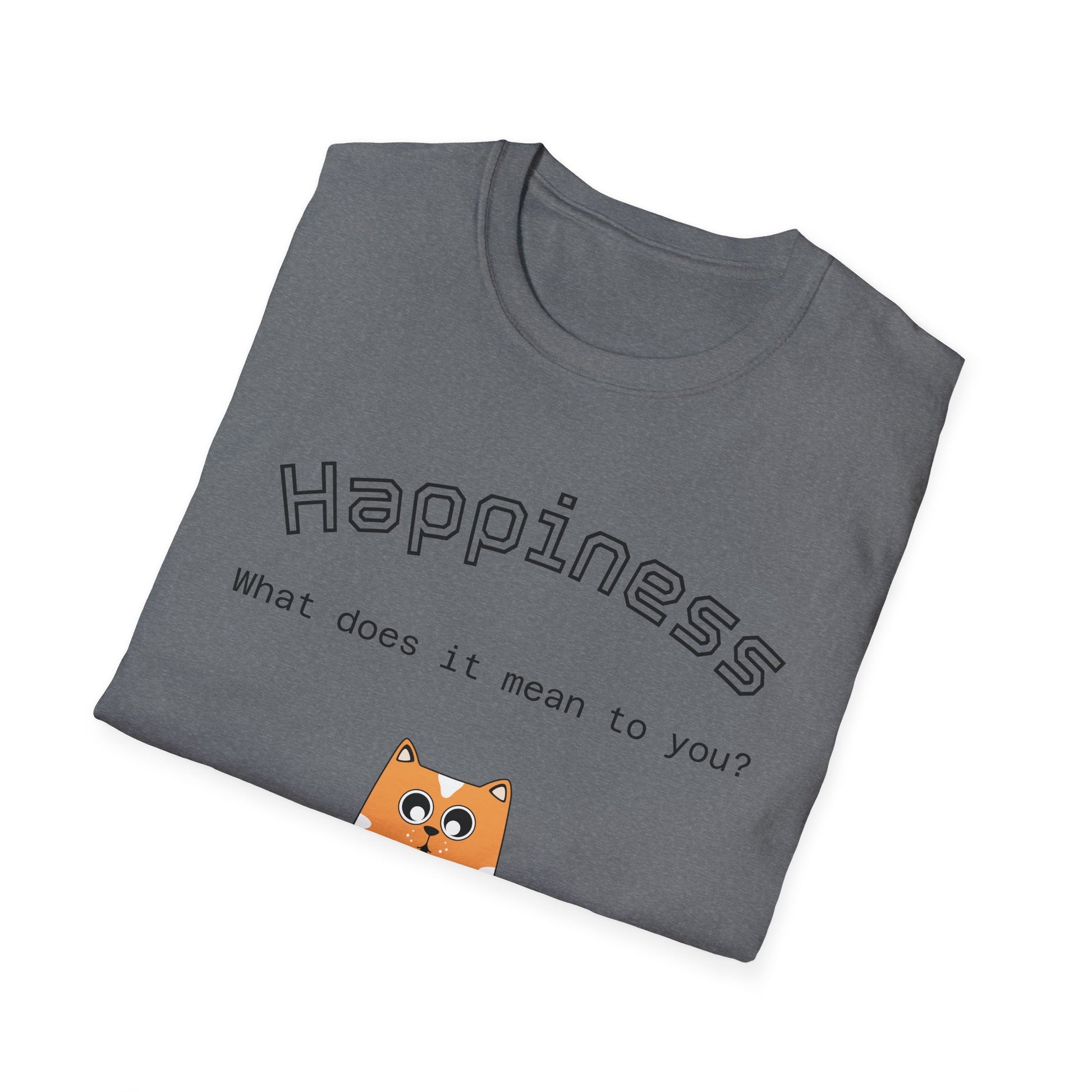 Introducing our unisex T-Shirt, designed to elevate your everyday style with a meaningful message: "Happiness, what does it mean to you?" Featuring a fun graphic that sparks conversation, this comfortable tee is perfect for those who value joy and uplifting vibes. Crafted from 100% ring-spun cotton, it offers a soft touch and breathable fit, making it an ideal companion for lounging at home, casual outings, or even a night out with friends. It's great for gifting on special occasions like birthdays, celebrations, or simply to brighten someone's day. This versatile piece fits seamlessly into any wardrobe and encourages positivity in your daily life, making it a go-to for anyone who appreciates a blend of comfort and style.